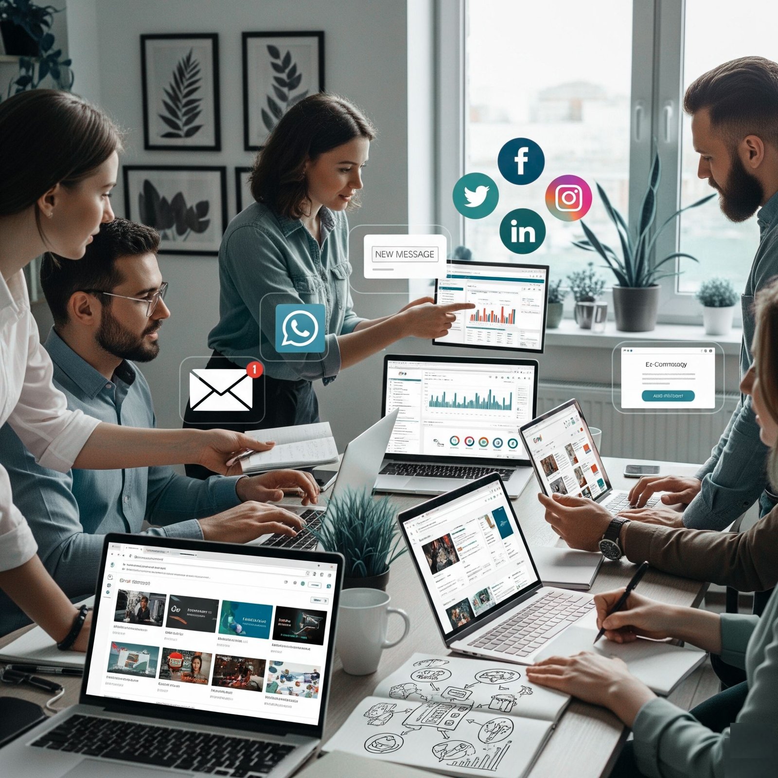 - Multi-Channel Marketing – Social media, search, email, and WhatsApp campaigns.